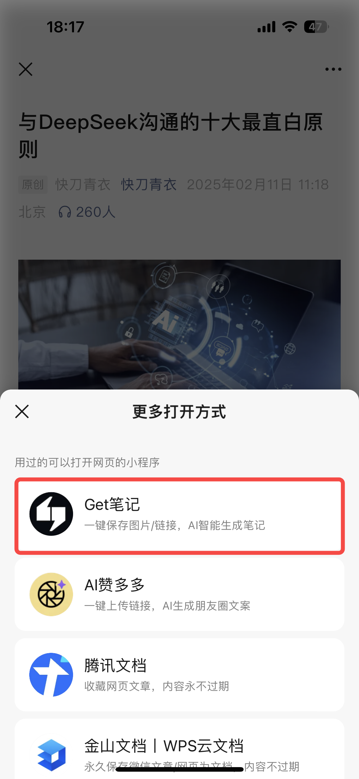 选择「Get笔记」小程序,一键保存图片/链接,AI智能生成笔记