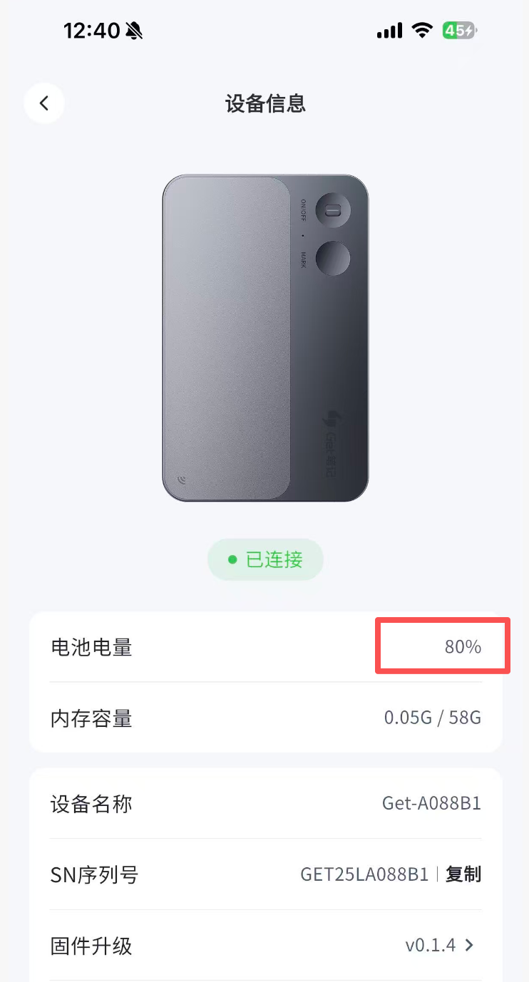如何查看GetSeed录音卡的电量