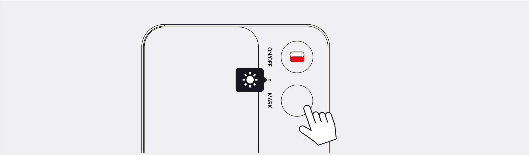 - 短按 MARK 键 1 秒,白灯亮起,说明设备已开启