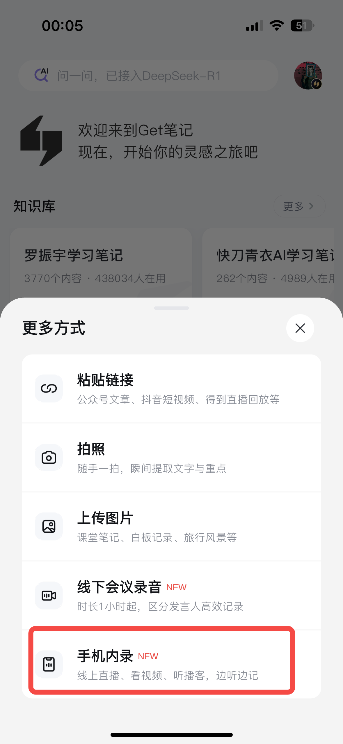 还可开启使用深度推理,并可以指定具体搜索范围(我的笔记、知识库、得到APP、全网)让你获得更全面、优质的答案。