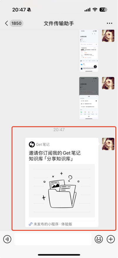 支持将知识库以多种形式(微信小程序、分享海报、链接等)分享给他人,也可订阅其他人的「靠谱知识库」,获取独家内容和实时更新。共享智慧,扩展视野,让学习更高效!