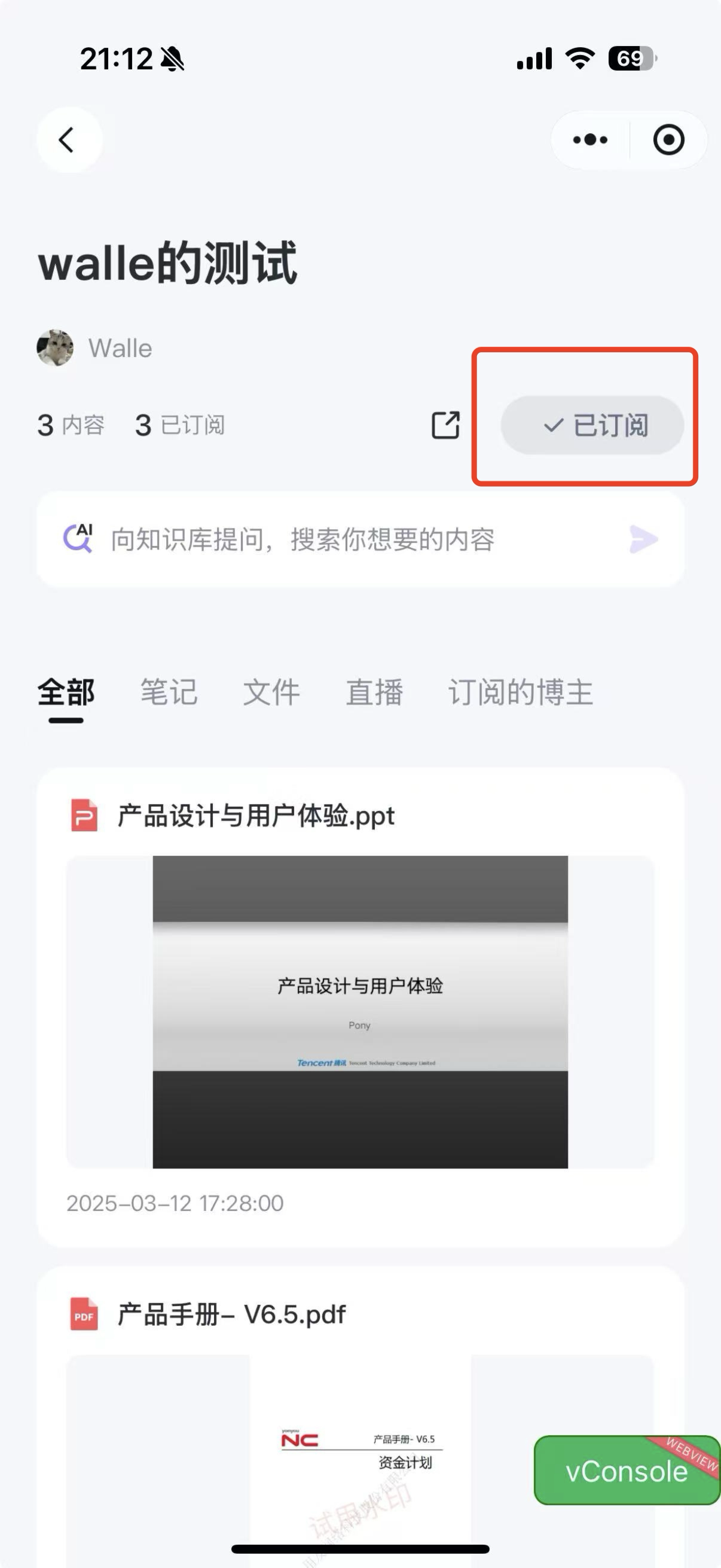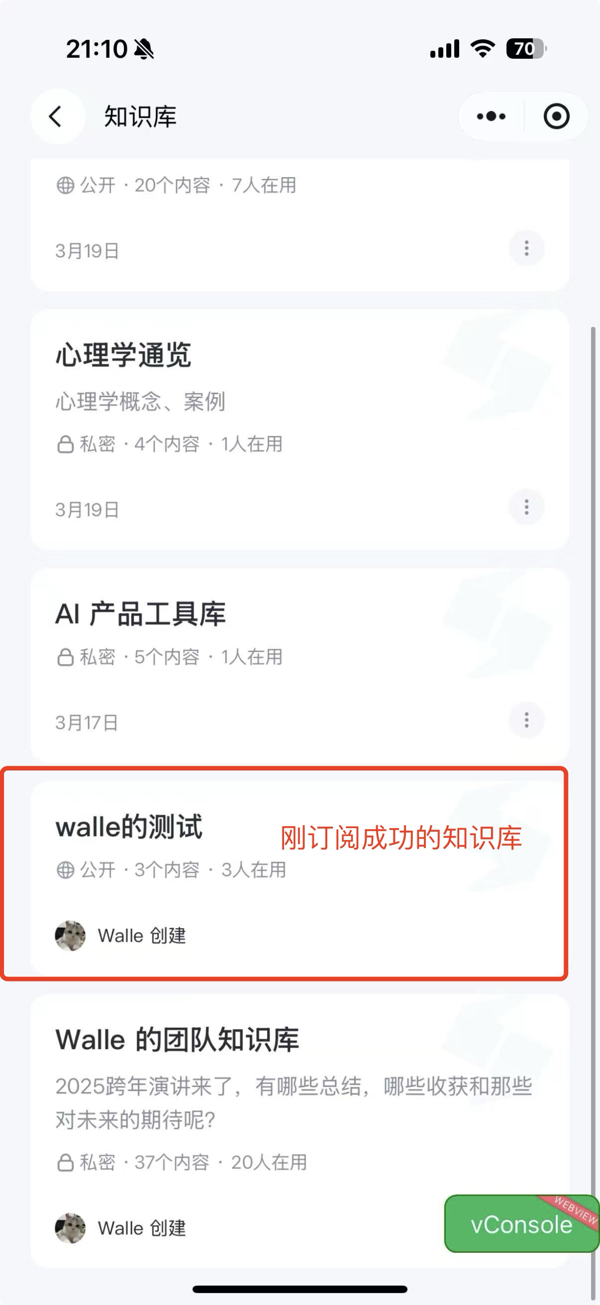 - 订阅成功后,该知识库会出现在你的知识库列表内