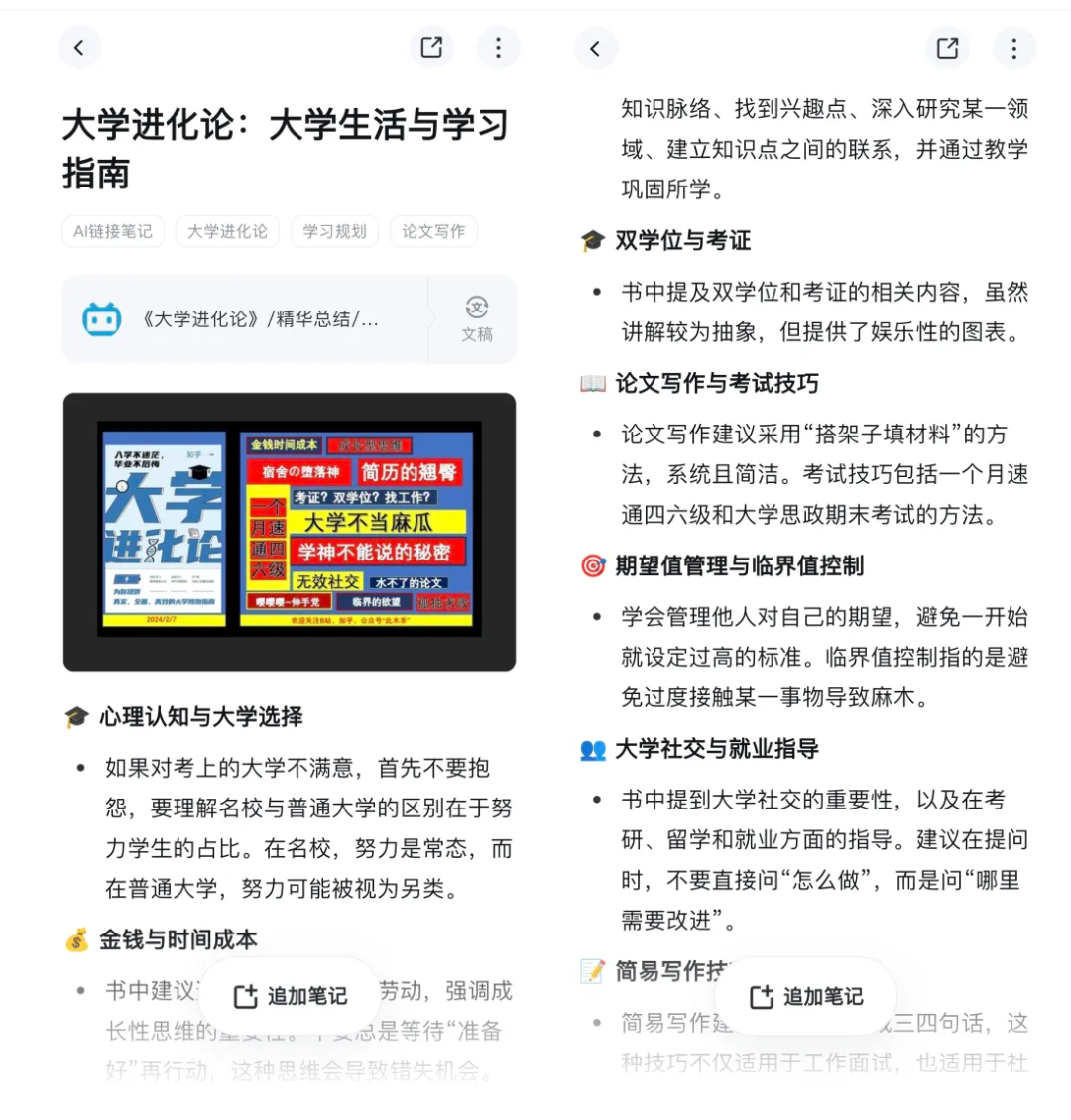 这样做你一打开笔记就能知道大概内容,想了解详情可以找到对应位置(左图)。