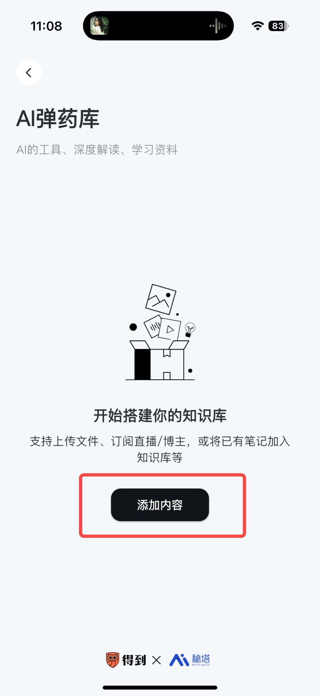 - 点击具体某个知识库,进入知识库详情页,然后点击“添加内容”按钮