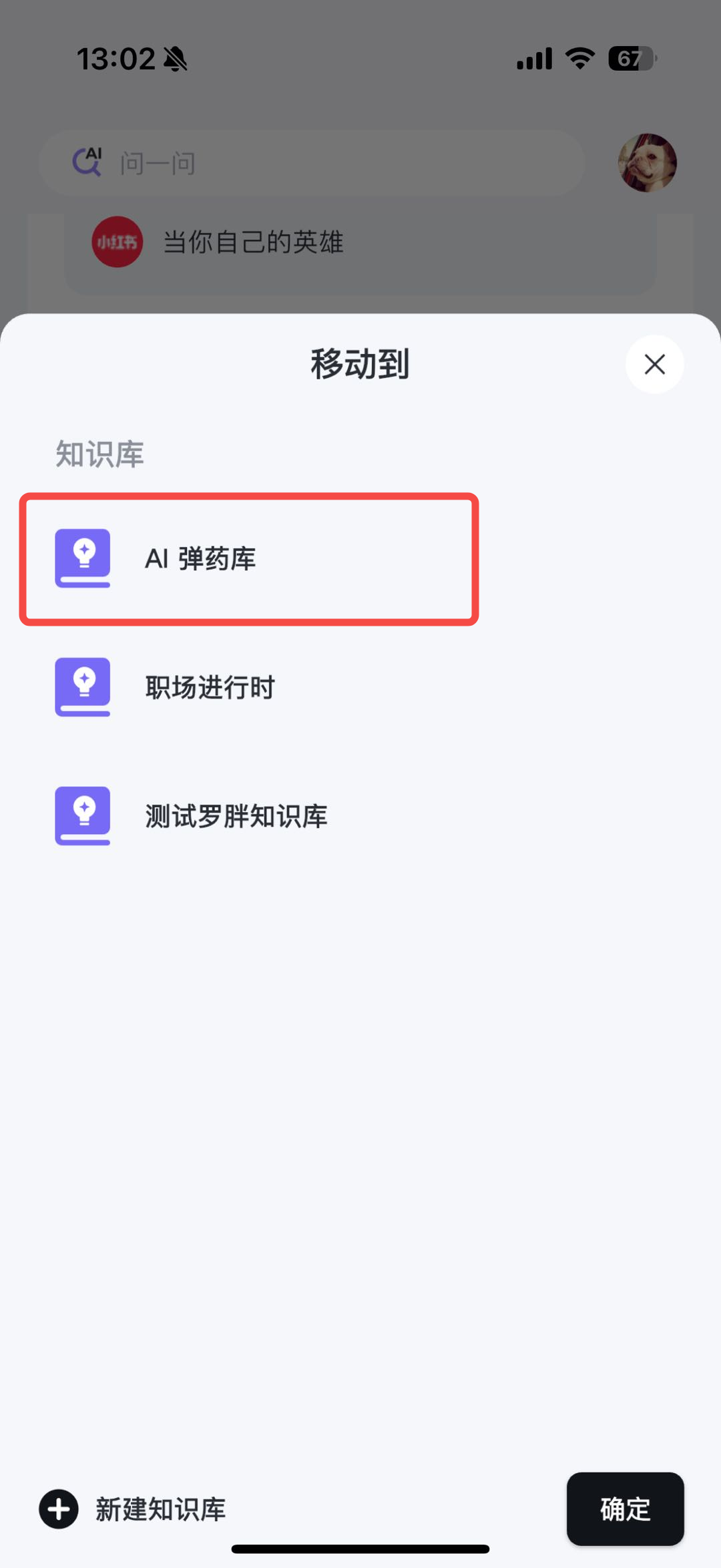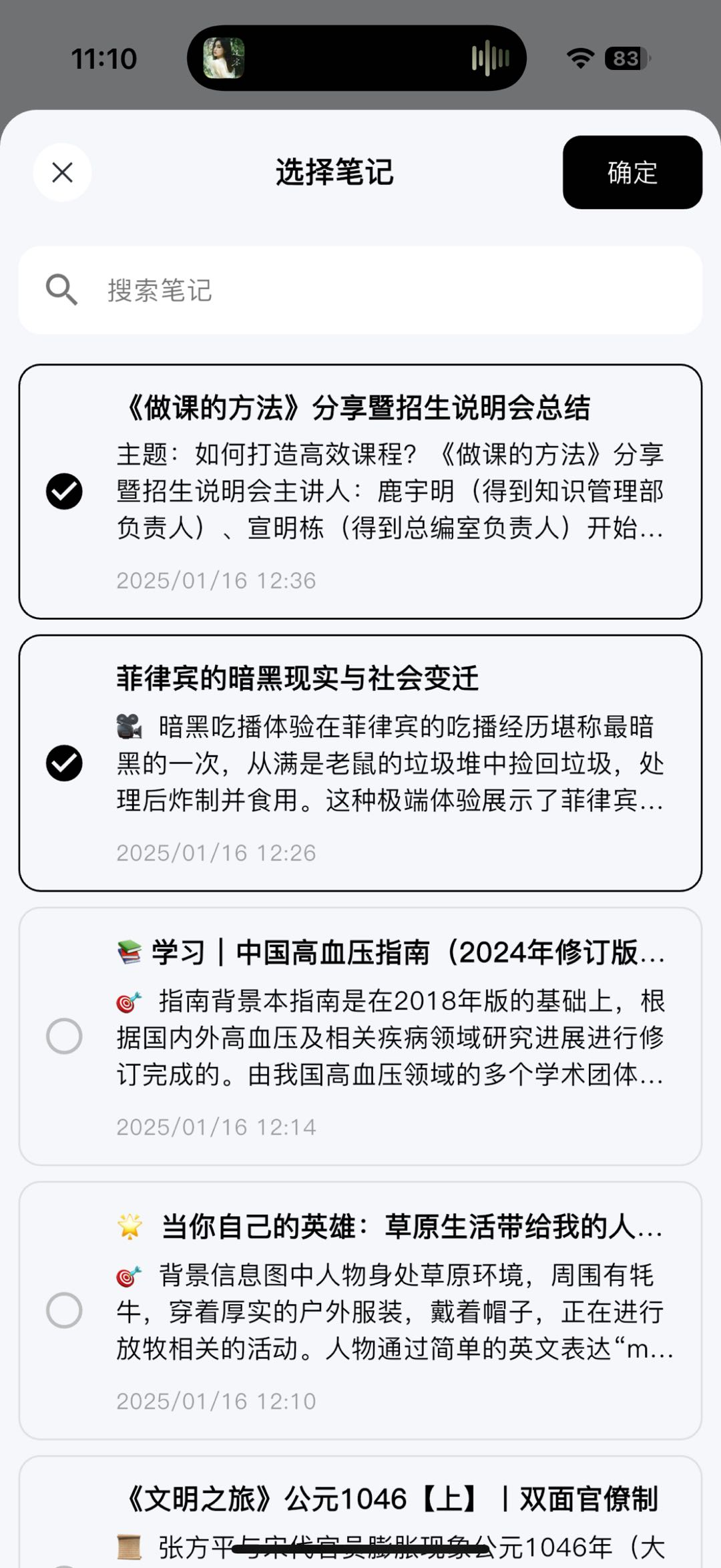 - 从首页笔记列表中,选择你要添加的笔记后,点击“确定”按钮,则笔记被加入知识库中