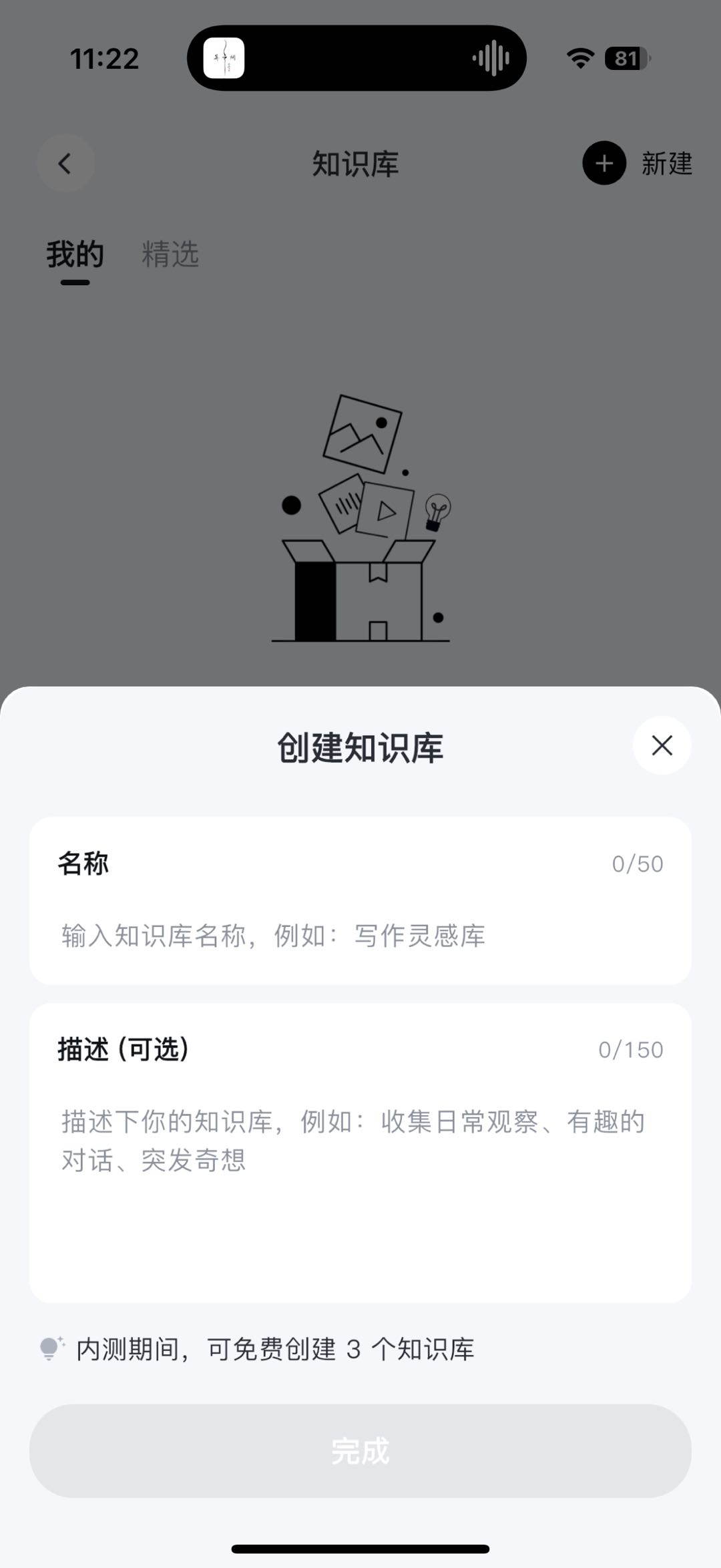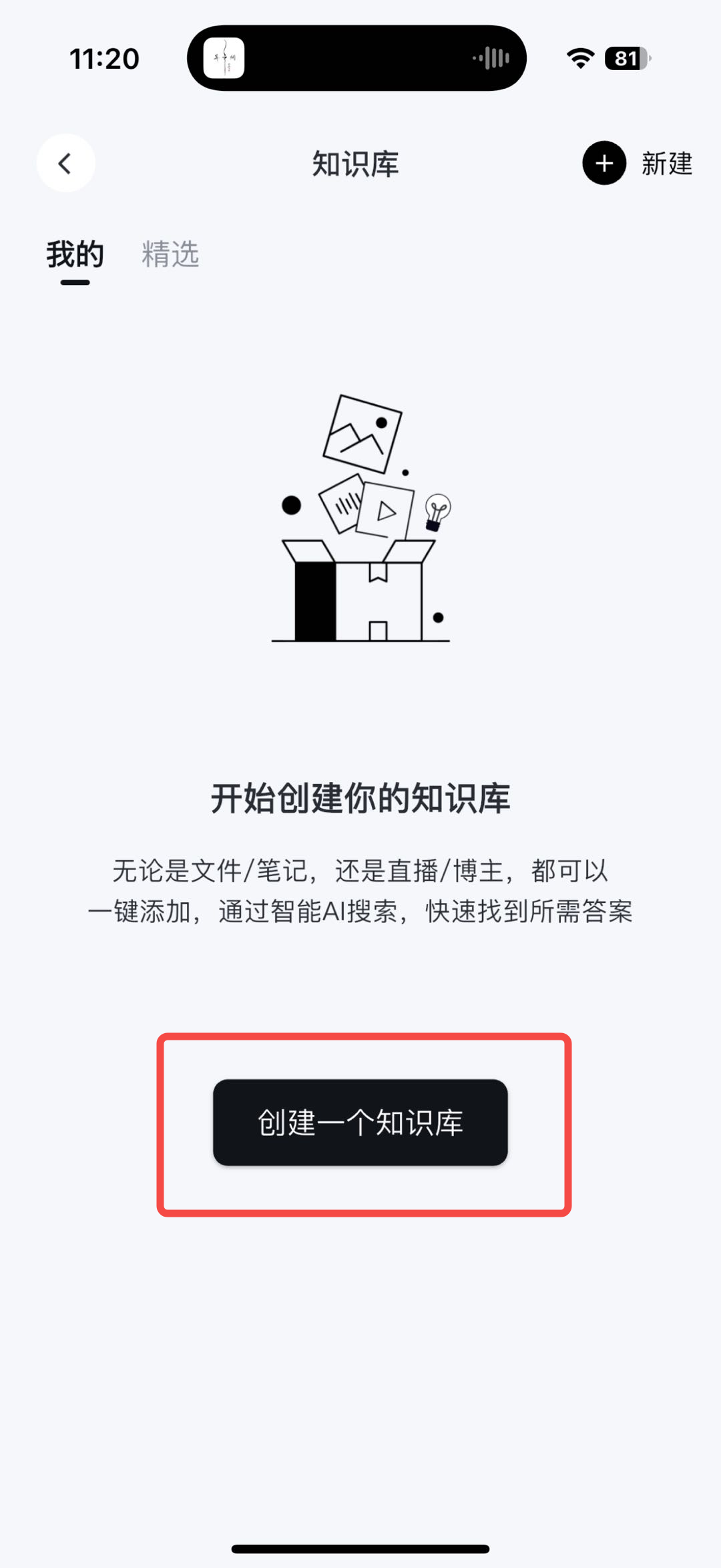 - 创建后,即可在知识库中上传文件、订阅直播、订阅博主或添加已有笔记