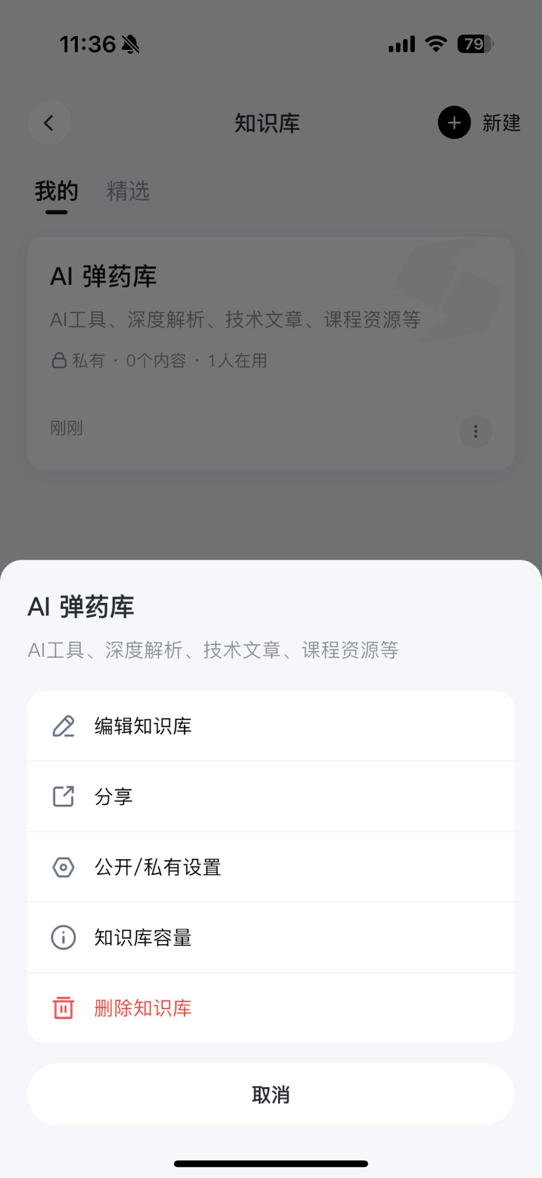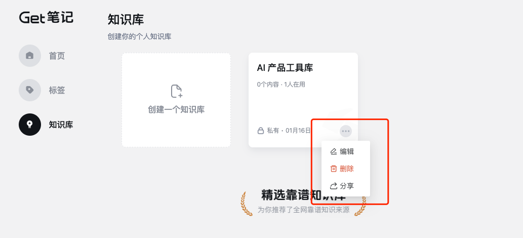 - 如果想要编辑、删除知识库,可以点击“...”操作