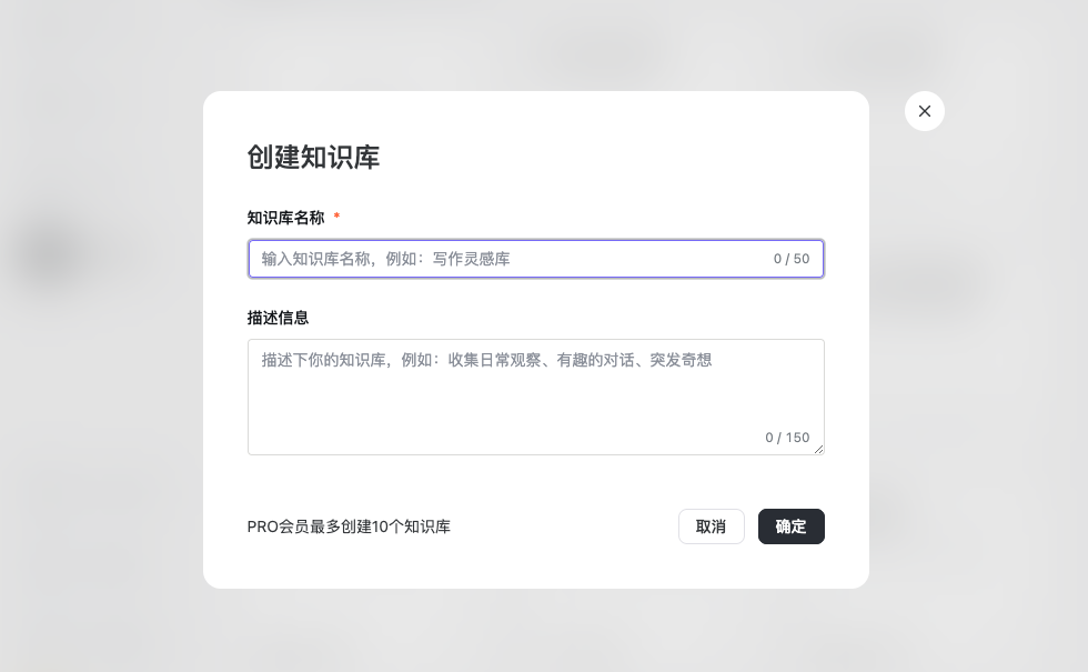 - PRO会员可创建知识库数量 不限,空间共500G