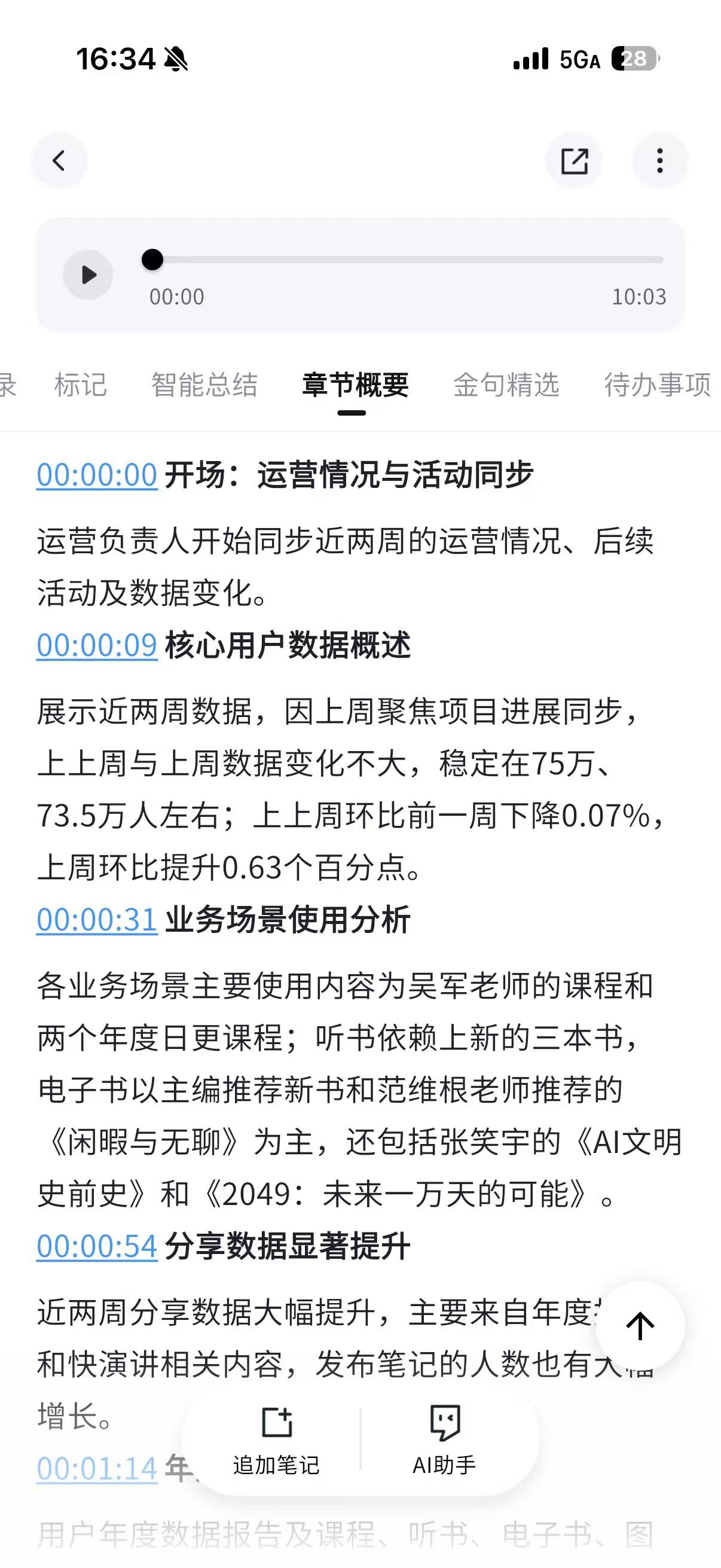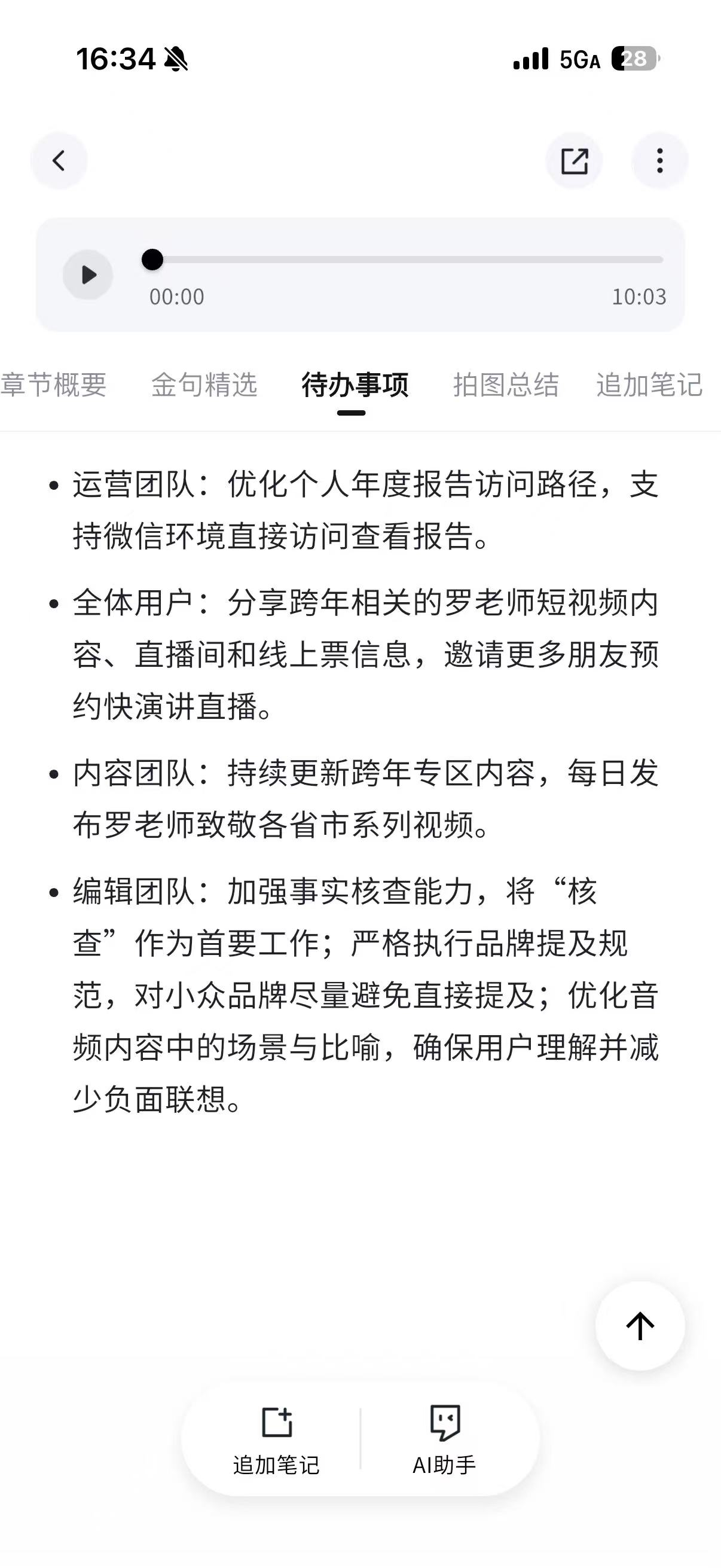 - 在录音的过程中,单击 MARK 键,标记重点,会后自动对标记重点部分进行总结。