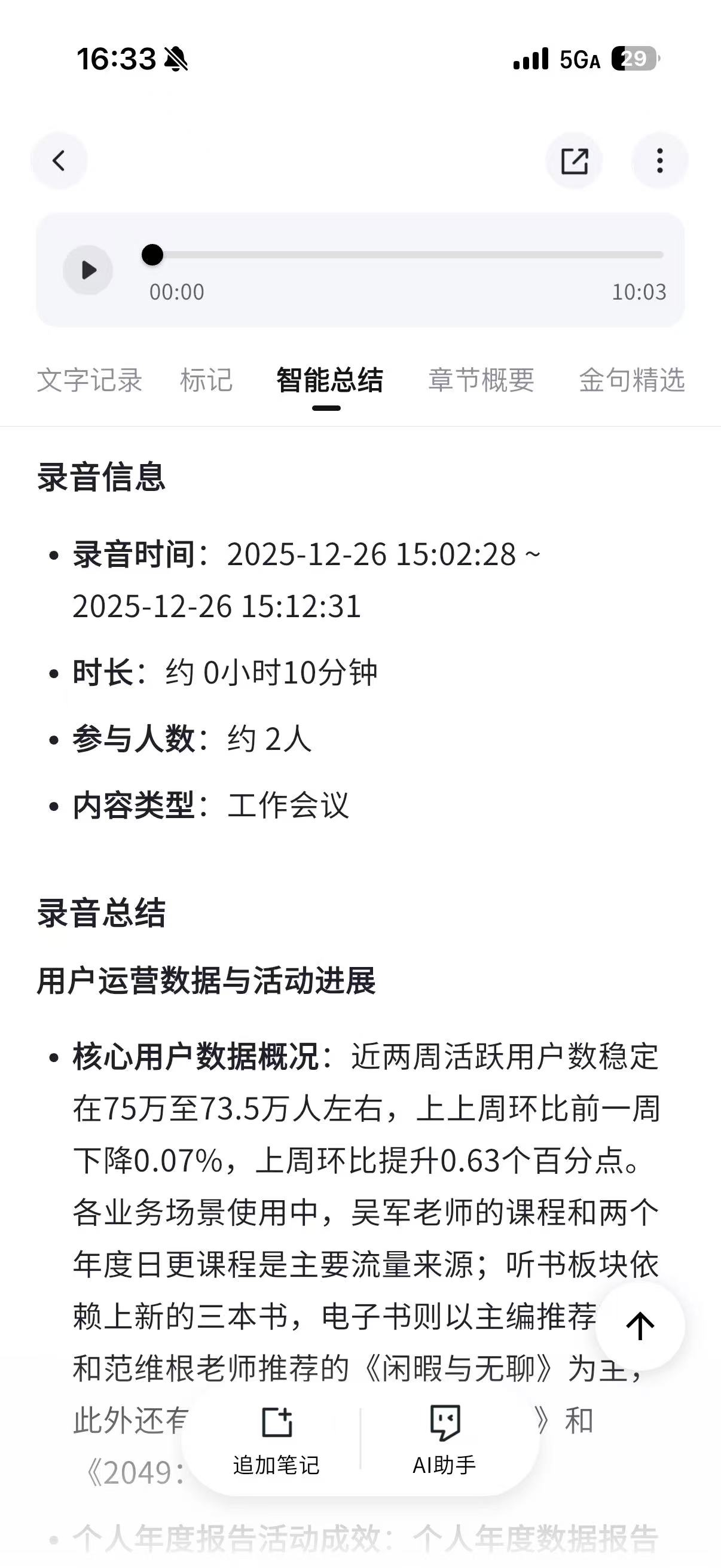 - 同步完成后,录音文件会出现在内容列表中,Get笔记 PRO会员 自动生成笔记