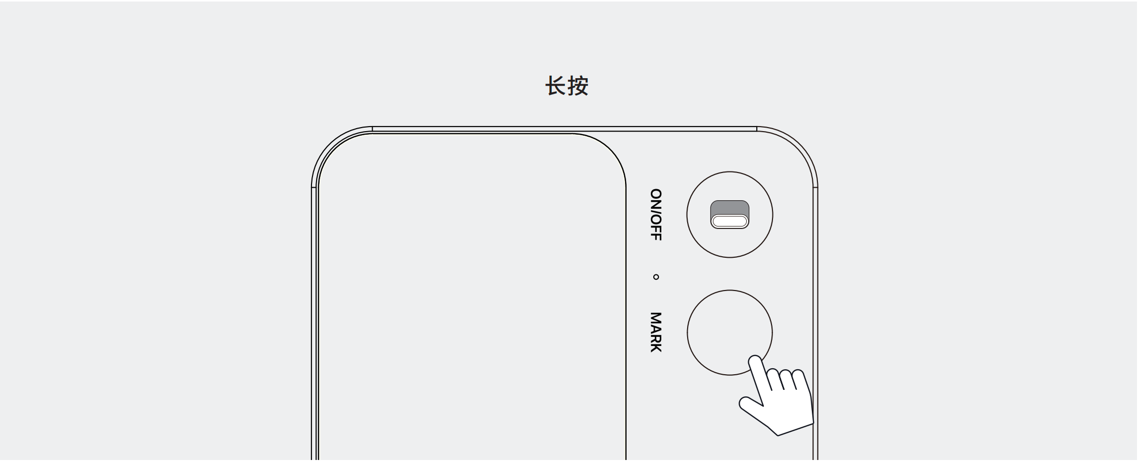 - 长按 MARK 键 1 秒,开启设备