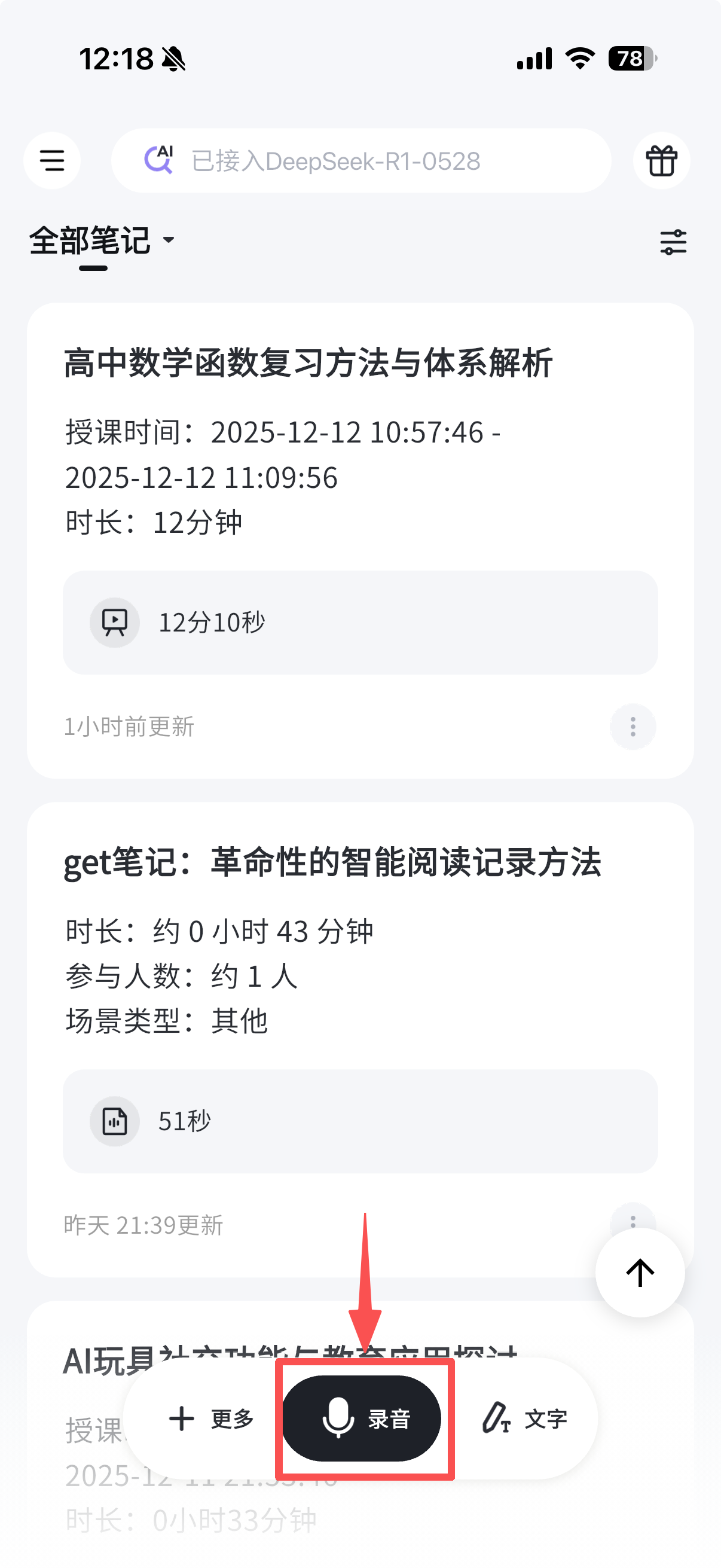 - 回到 Get 笔记 APP 后,录制页面会有实时转录的文字展示出来,即表示已经在进行录制了